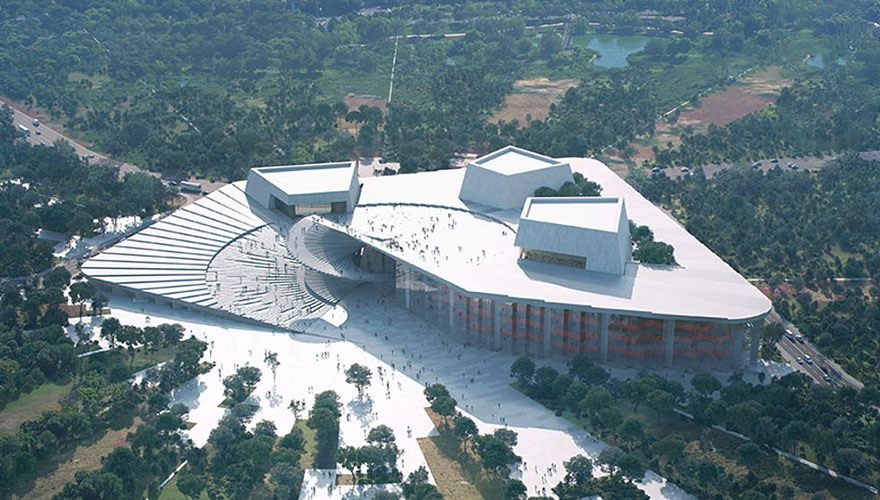The Shanghai Opera House is located within the World Expo Cultural Park, with a total construction area of over 140000 square meters and three opera halls of different sizes. The entire architectural form of Shanghai Opera House takes the meaning of "Chinese fan", reflecting the aesthetic style of Chinese architecture.