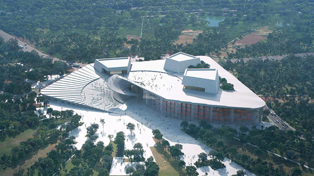 上海大歌劇院,位于世博文化公園內,總建筑面積逾14萬平方米,擁有不同大小的3個歌劇廳。上海大歌劇院整個建筑形體取“中國扇”之意,體現中國建筑的審美風格。預計2025年竣工。 作為未來亞洲演藝中心的文化巨艦,建成后的上海大歌劇院將成為中國第一座集演出交流、創制排演、藝術教育等于一體,兼顧歌劇藝術交流、歷史展示、理論研究等功能的劇院綜合體。