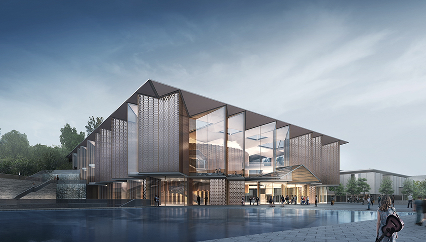 蘇州民族管弦樂團音樂廳位于蘇州高新區科技城,占地面積約10.2畝,建筑面積約1.9萬平方米,音樂廳內部也采用了最先進的抗震技術和聲學構造。